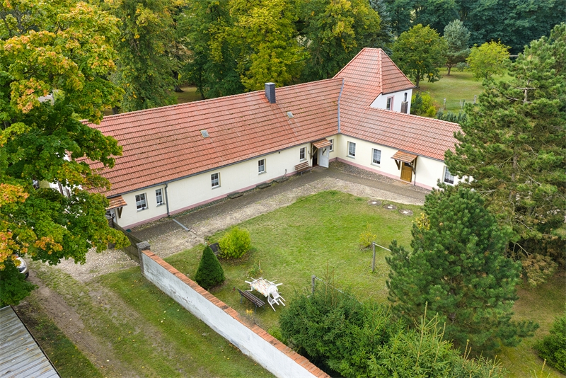 Das Anwesen liegt in einer der stillen, ursprünglich gebliebenen Landschaften Sachsen-Anhalts – eingebettet in weite Felder, sanfte Wiesen und kleine Waldzüge. Abseits des Durchgangsverkehrs entfaltet sich hier eine selten gewordene Qualität: Raum, Ruhe und landschaftliche Großzügigkeit. Der Hof wirkt nicht wie ein Zufallsfund, sondern wie ein bewusst gesetzter Ort. Seine Lage folgt der Logik historischer Gutsanlagen: leicht erhöht, mit Blick über das Land, geschützt und zugleich offen zur Landschaft. Diese Einbettung verleiht dem Anwesen eine besondere Präsenz und Würde, die man bereits bei der Anfahrt spürt. Kein Verkehrslärm, keine Hektik – nur Natur, Ruhe und Raum. Und dann taucht er auf: der alte Hof, majestätisch und doch still, als hätte er hier schon immer auf jemanden gewartet. Erbaut um das Jahr 1799, geht das Anwesen nach historischen Aufzeichnungen auf Hans Ernst Dietrich von Werder-Rogäsen, preußischer Staatsminister, zurück. Nachdem er das umliegende Land käuflich erworben hatte, ließ er diesen Hof errichten – als repräsentatives Gut inmitten weiter Felder und Wälder. Noch heute spürt man die Handschrift jener Zeit, in der ländliche Architektur Würde und Zweckmäßigkeit verband. Seine Mauern atmen Geschichte. Sie erzählen von bäuerlichem Leben, von Wandel und Handwerk, von Zeiten, in denen Nachhaltigkeit noch kein Modewort, sondern Lebensart war. Die mit Kieselsteinen angelegte Zufahrt führt zum Turmeingang, der Besucher in eine Diele mit historischem Flair empfängt – ein Entrée, das sofort das Gefühl vermittelt, an einem besonderen Ort zu sein. Drinnen verschmelzen Vergangenheit und Gegenwart auf beeindruckende Weise. Liebevoll restaurierte Details – originalgetreue Fensterläden, alte Kachelöfen und ein historisches Esszimmer – treffen auf modernisierte Wohnräume, funktionale Bäder und eine zeitgemäße Haustechnik. Wer hier lebt, genießt Komfort, ohne auf den Charme des Ursprünglichen zu verzichten. Doch das eigentliche Herz des Hofes schlägt draußen. Die gepflegte Parkanlage mit ihren Sitzplätzen und Blickachsen lädt dazu ein, den Tag mit Vogelgezwitscher zu beginnen und mit dem letzten Licht der Sonne zu beenden. Zwei solide Nebengebäude, teils mit Wein berankt, erzählen vom Fleiß früherer Generationen. Heute bieten sie Raum für Werkstatt, Atelier oder Pferdestall – ganz nach dem Traum des neuen Eigentümers. Auf über 17.000 Quadratmetern Wiesen, Bäumen und Gartenfläche lässt sich das Leben neu erfinden. Obst und Gemüse aus eigenem Anbau, Tiere im Grünen, handwerkliche Projekte – hier ist all das möglich, wovon viele nur träumen. Sie denken darüber nach, sich mit der Pferdehaltung zu beschäftigen? Das angrenzende Stallgebäude bietet hierzu ohne weiteres Platz für 5 Pferdeboxen. Darüber hinaus besteht die Möglichkeit weitere 20 Hektar Ackerfläche zusätzlich zu erwerben. Ferienzimmervermietung? Zwei möblierte Zimmer mit eigenem Bad bieten sich hierfür geradezu an. Hier bieten sich Ihnen Möglichkeiten über Möglichkeiten! Und das Beste: Trotz seiner abgeschiedenen Lage ist das Anwesen kein Ort der Isolation. Genthin, mit Schulen, Ärzten, Bahnanschluss und Einkaufsmöglichkeiten, liegt nur etwa 14 Kilometer entfernt. Dieses Haus ist kein gewöhnliches Immobilienangebot. Es ist ein Stück preußischer Geschichte – bewahrt, gepflegt, modernisiert und bereit für ein neues Kapitel. Für Menschen, die das Echte, Ruhige und Zeitlose suchen, ist der Hof mehr als ein Zuhause. Es ist ein Ort, der inspiriert, entschleunigt und verbindet – Vergangenheit, Gegenwart und Zukunft. Erleben Sie die Geschichte dieses Hofes selbst – am besten bei einem Rundgang über das Anwesen, dort, wo alles begann.